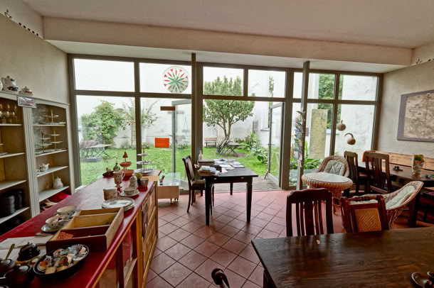 Das Café befindet sich in der Kirche Kienitz, nur wenige Meter vom Oder-Neisse-Radweg entfernt, am Deichkilomenter 39,1